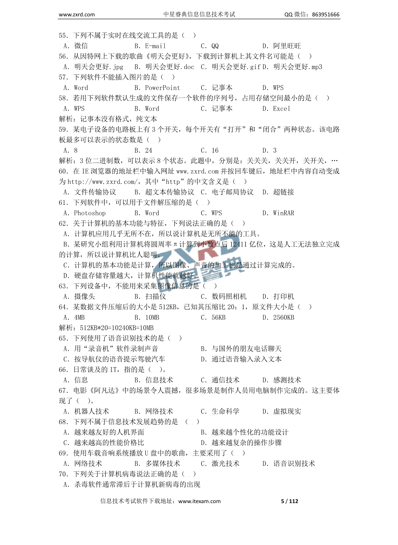 山西省2023年初中学业水平考试信息技术复习题 命题有关说明