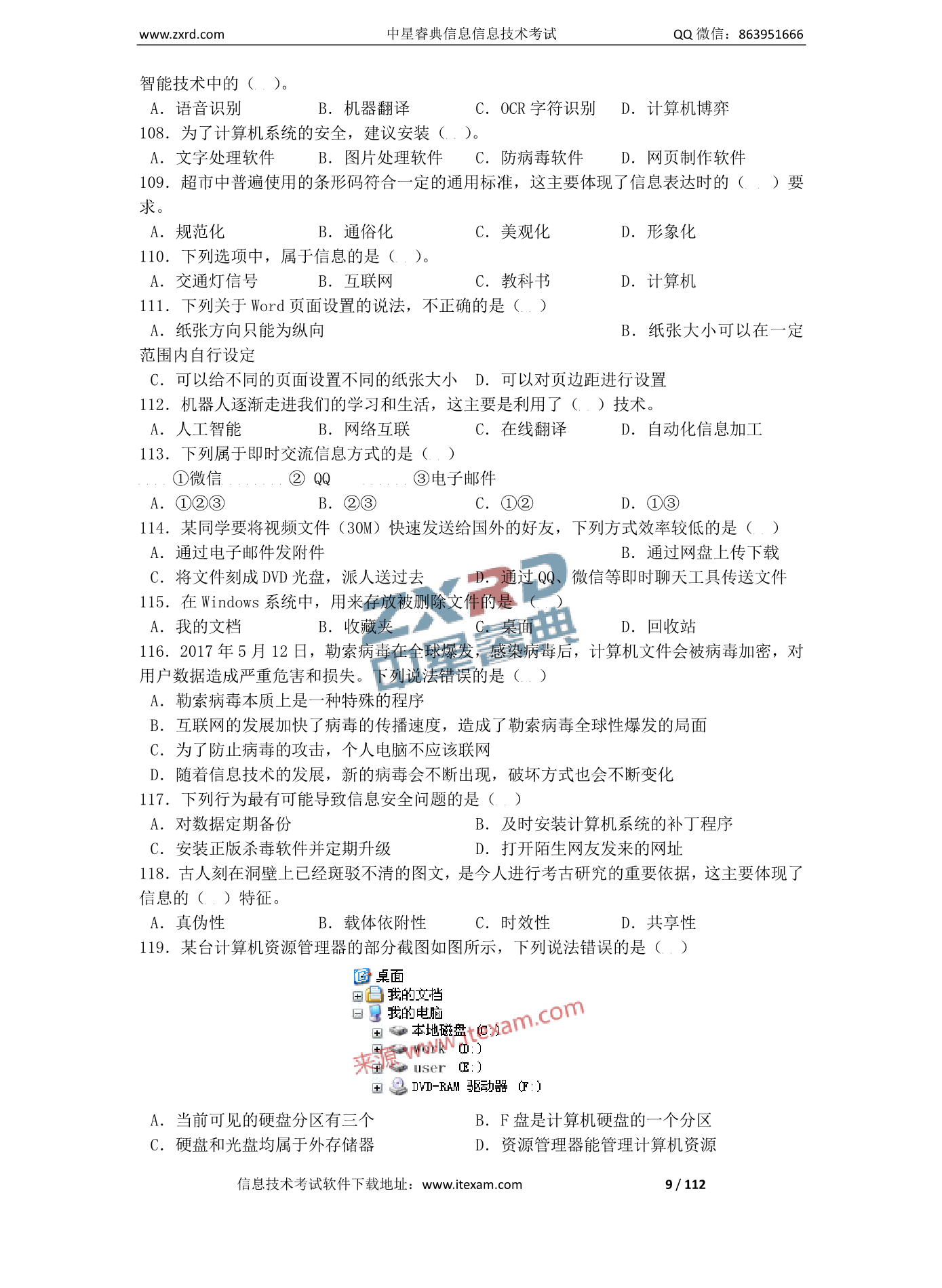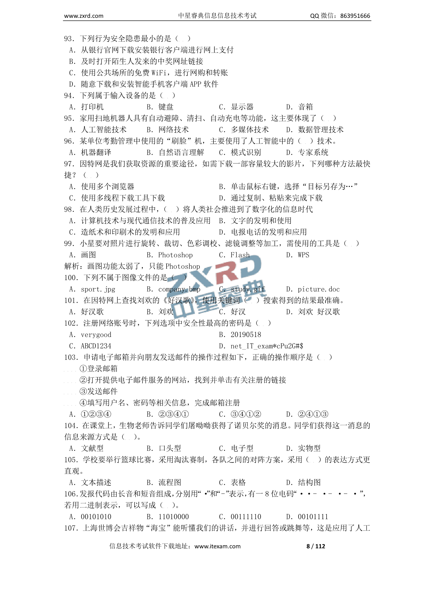 山西省2023年初中学业水平考试信息技术复习题 命题有关说明