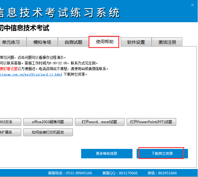 点考试软件上的使用帮助-下载其它资源,可以进入网页进行下载相应的应用程序进行安装。