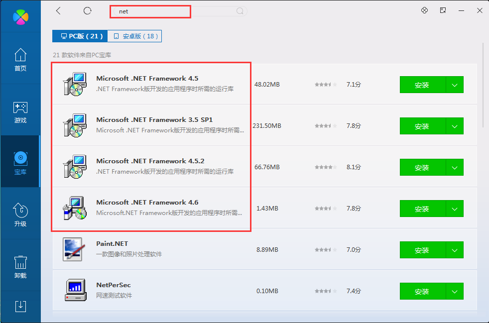在软件管家上方输入 net,点放大镜图标进行搜索。
