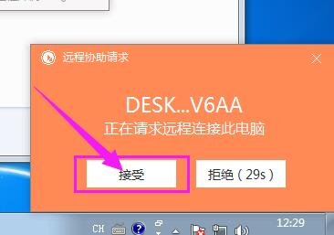 客服人员根据你的识别码来申请远程你的电脑,你点右下角弹出的对话框中的“接受”,